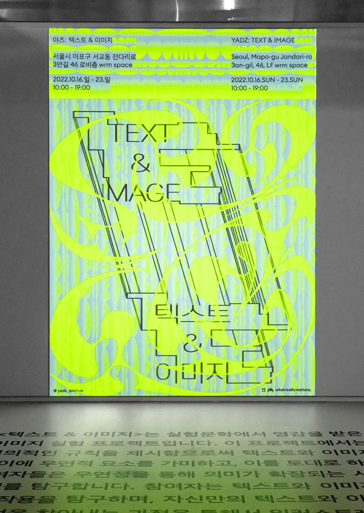 《텍스트 & 이미지》는 실험문학에서 영감을 받은 이미지 실험 프로젝트이다. 이 프로젝트에서는 임의적인 규칙을 제시함으로써 텍스트와 이미지 사이에 우연적 요소를 가미하고, 이를 토대로 하여 참여자들은 우연성을 통해 의미가 확장되는 시각 언어를 탐구한다. 참여자는 텍스트와 이미지의 상호작용을 탐구하며, 자신만의 텍스트와 이미지 관계성을 찾아내는 과정을 통해서 일러스트레이션 기반의 창의적인 결과물을 도출해낸다.