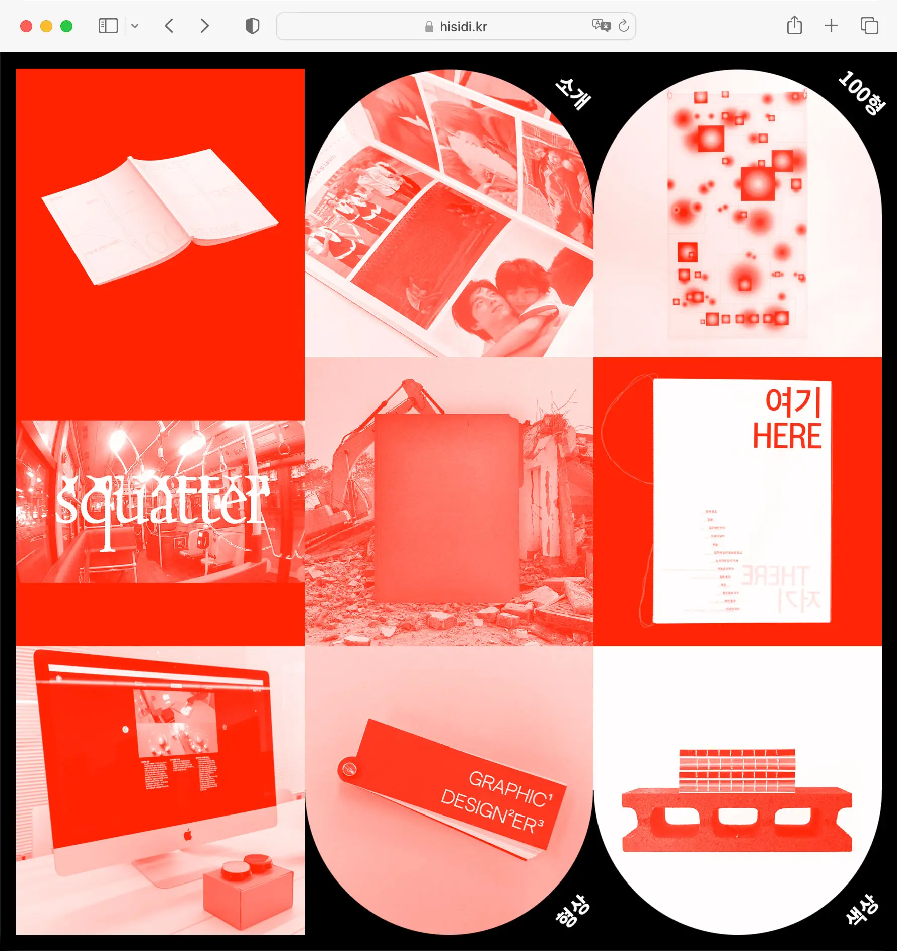 웹사이트 〈100형 100색〉은 홍익대학교 시각디자인과 사회문화적 디자인 스튜디오(3)에서 진행한 100 프로젝트의 결과물을 수집한 것이다. 100개, 100명, 100회, 100분, 100초, 100번, 100쪽, 100권, 100자, 100줄, 100미터, 100단어… 작업자는 ‘100’이라는 키워드를 활용해서 자신이 알고 싶은 ‘무엇’의 실체를 파악하기 위해 모으고, 가보고, 파보고, 만들어 보았다. ‘형상’ 버튼을 누르면 목록의 순서가, ‘색상’ 버튼을 누르면 목록의 색상이 무작위적으로 변화한다.