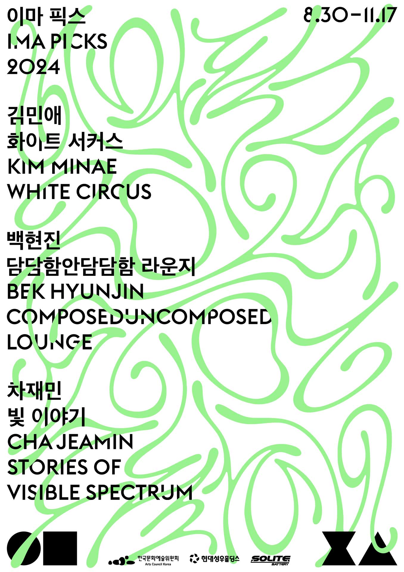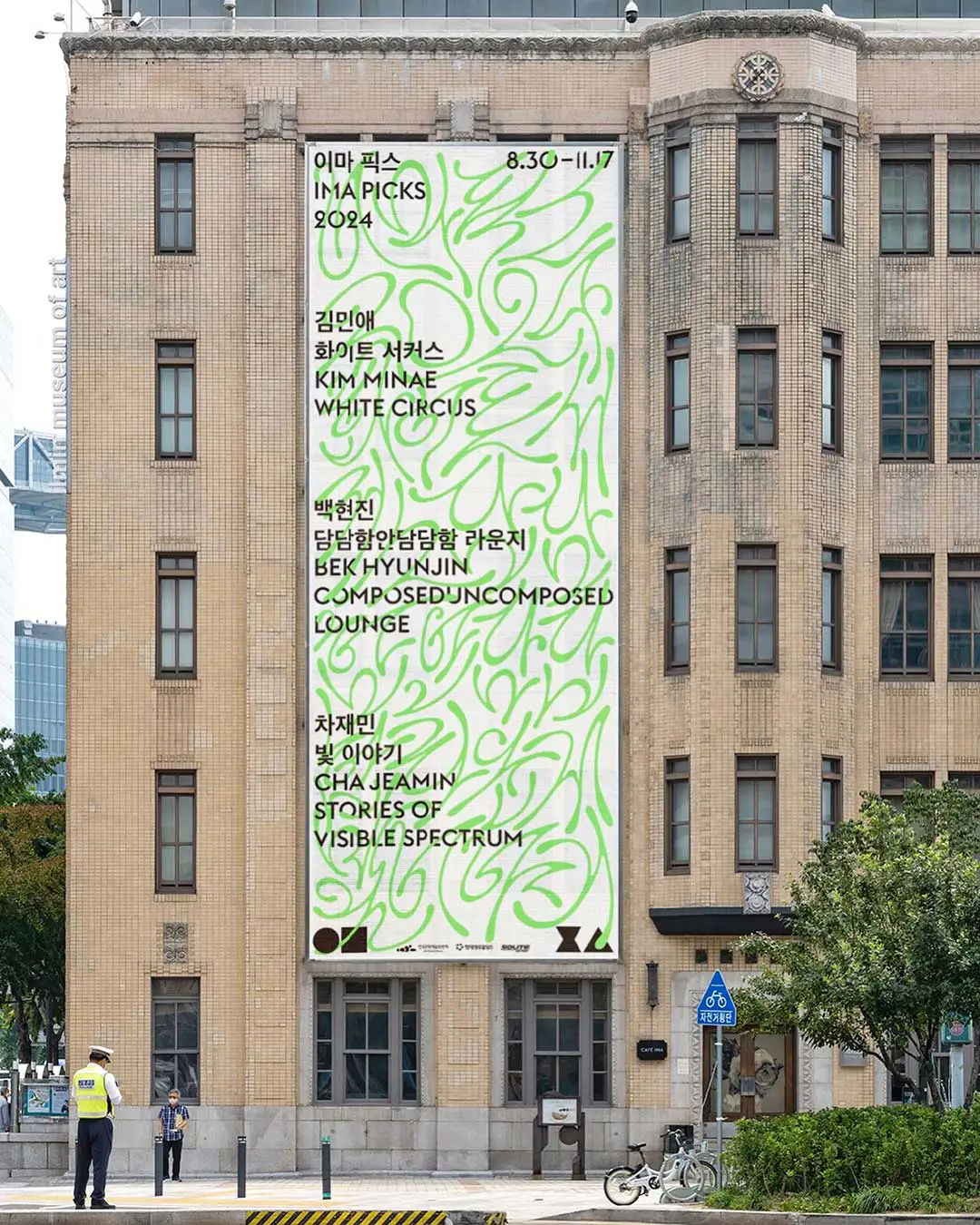 《이마 픽스 2024》는 일민미술관이 주목하는 세 명의 작가를 선정해 각자의 개인전을 선보이는 전시다. 그래픽 아이덴티티는 전시명을 활용한 유기적인 타이포그래피 패턴으로 구성했으며, 이는 매체와 지면에 따라 유연하게 적용되어 세 전시를 하나의 흐름 속에 엮어낸다.