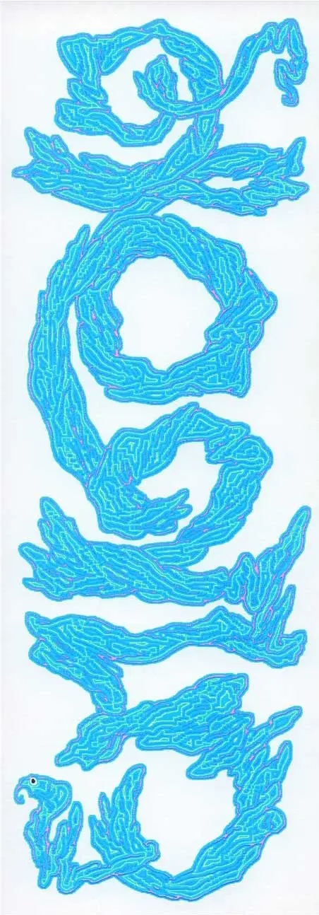 할당된 공간을 가득 차지한 매듭은, 로마자 중 가장 빈도 높게 쓰여지는 ‘e’의 자리를 빌려 영역의 확장을 꾀한다.