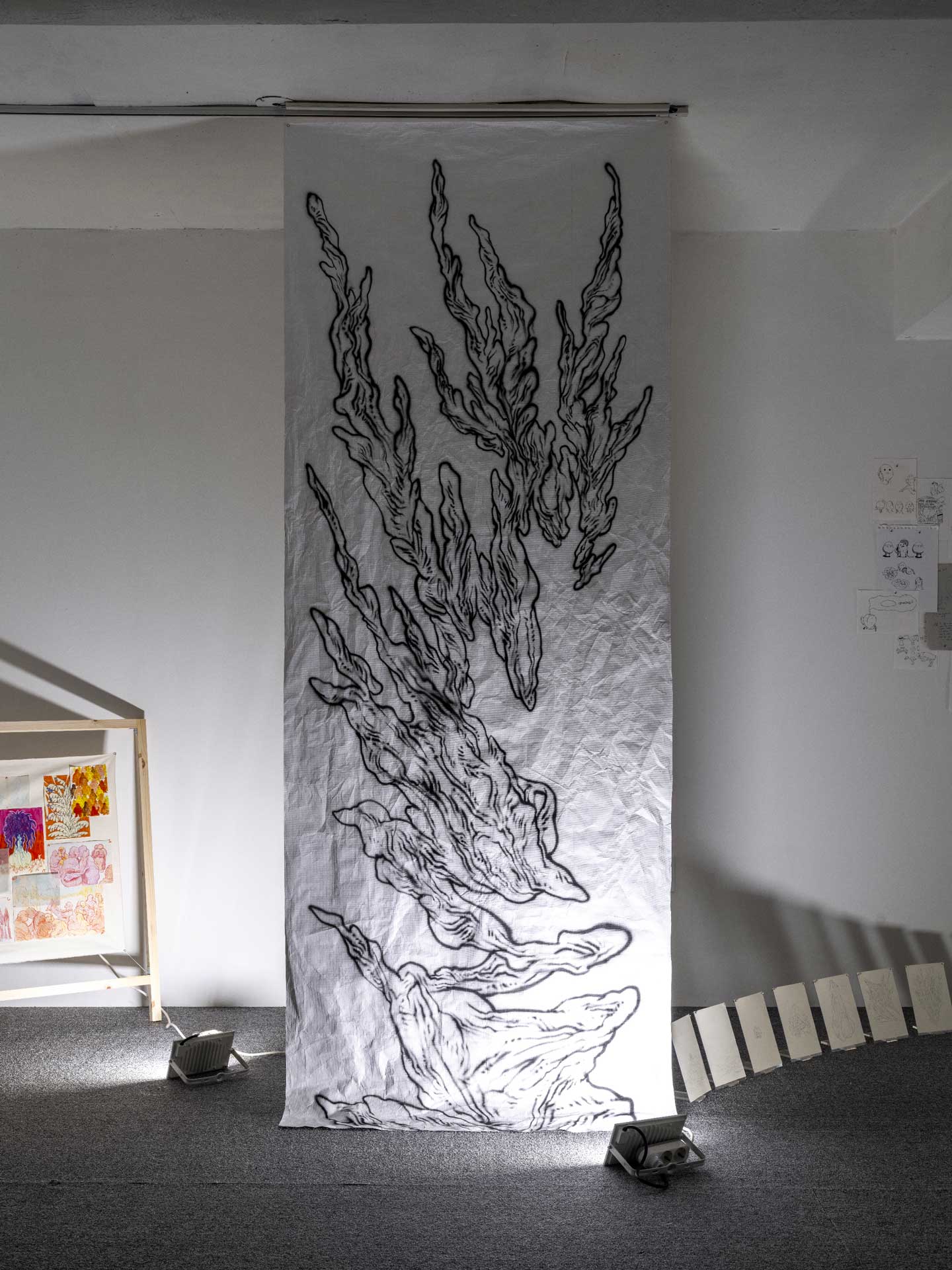 이 과정에서 나는 ‘지연’을 실천한다. ‘지연’은 “우유부단한 망설임이나 유효한 행위에 대한 성마른 포기가 아니라 감히 판단을 유보하고 그 유예의 장면을 시청각적으로 표현해 내는 적극적인 결단(김홍기, 『지연의 윤리학』, 워크룸프레스, 2022, 11쪽)”으로, 경계를 가시화하여 감각 체계의 이면을 다시 한 번 성찰하도록 이끈다. 이를 통해 감각은 단순히 외부 자극의 반영이 아니라 끊임없이 변화하며 재창조되는 현상임을 드러내고자 한다.